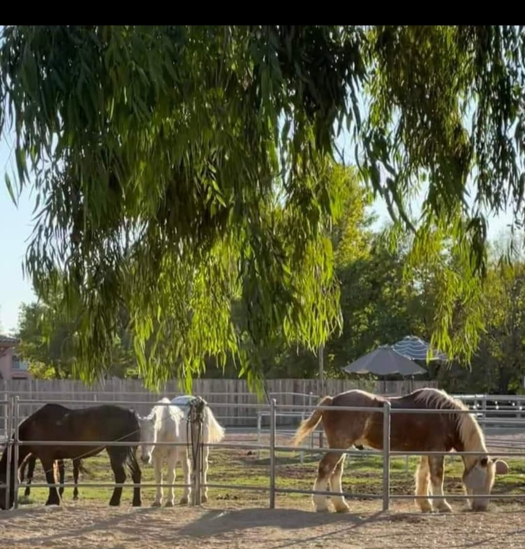 Serenity Stables: Lessons, Boarding & Rescue is in Chandler, Arizona near Queen Creek & Cooper Roads. Our full service care is $700 monthly. Includes the following services. ● 3 custom meals of choice hay and slow feed bermuda bag in stall and bermuda available in pasture during turnout. Also included, senior, low molasses, complete feed, alfalfa pellets, bermuda pellets of choice and probiotics, electrolytes and trace minerals fed daily. Any additional vitamins or medication we are happy to add if provided. ● turnout for 6 to 12 hours on grass pastures depending on weather, upto 5 days a week. ● beautiful deeply bedded stalls with high quality pine bedding. ● large 20 inch metal fans in every stall allowed, on 247 over 80° ● custom shaded barns 10° cooler than temp ● swamp coolers available for those with anihydrosis ● blanketing ● worming every 3 months ● fly sprayed daily and masks cleaned weekly ● gated secure facility ● 247 care given & EVEN 1am stall checks♡ ● specializing in seniors and rehabilitation ● WEEKLY mosquito fogging and fly control that is ANIMAL SAFE ● amazing ranch manager and boarders ● lit arena & roundpen drug & watered daily ● sand arena serviced quarterly by Papa Petes ● large clean tack rooms ● quiet neighborhood riding and 80 acres across the street around airpark to ride out in alfalfa fields ● Dr Baumler is our barn vet and Az Equine for emergency ●Michael Sauter is our farrier. ●Michael Sorum is our lameness specialist ●lessons offered Please call/message for a phone appt or tour!! 480-577-1300 Thank you
